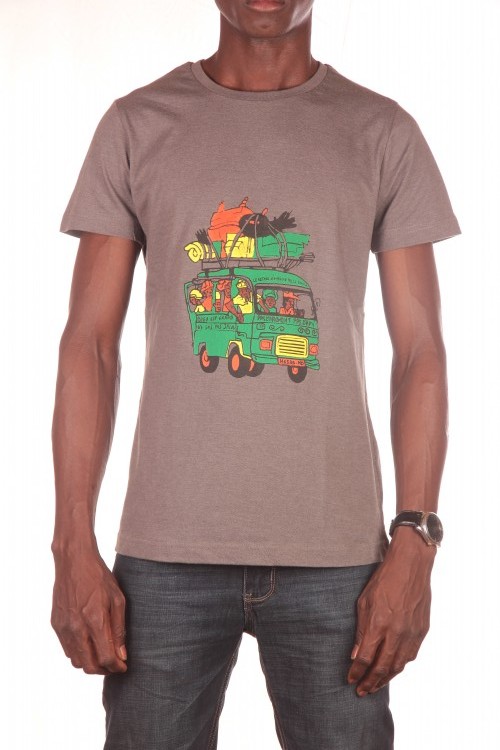 T shirt homme gris chiné motif WARA