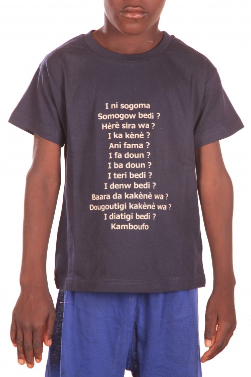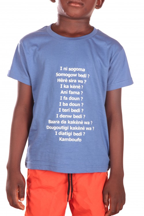 T shirt enfant bleu marine motif SALUTATIONS