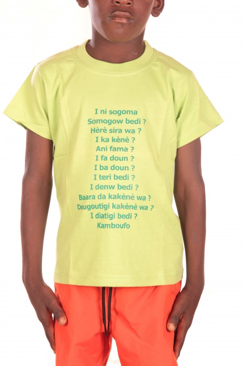 T shirt enfant vert anis motif SALUTATIONS