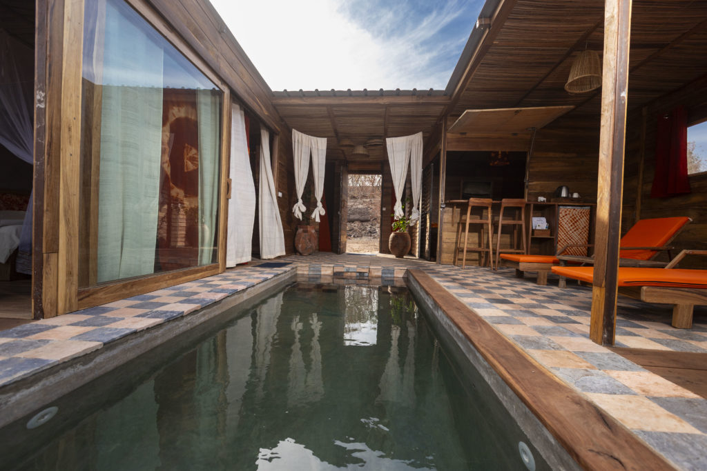 inauguré en janvier 2026, le chalet 35 est l’aboutissement de 20 années de perfectionnement de nos artisans, unissant confort et design dans un cadre grandiose digne des plus grands safari lodge d’Afrique.